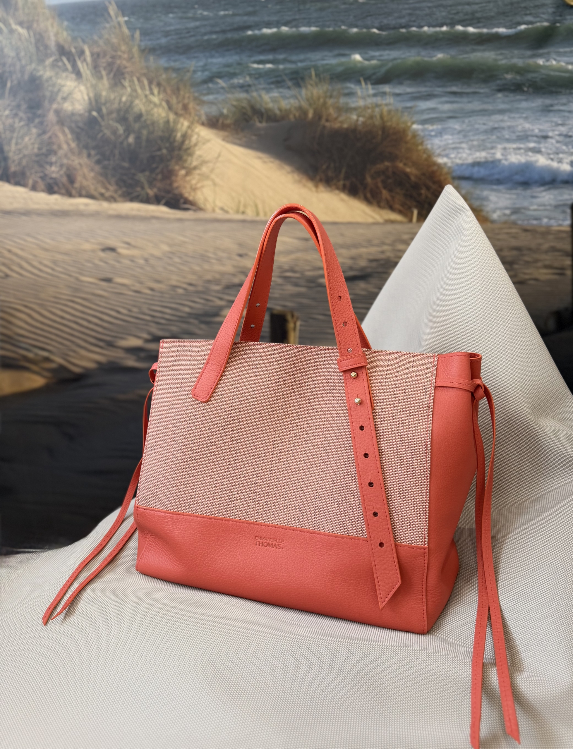 Des pièces originales et élégantes élaborées avec des cuirs français ou italiens, savamment mêlées à des textiles marins, faites à la main sur mesure, sur commande ou déjà créées dans son atelier-boutique ‘’Made in bord de mer’’.